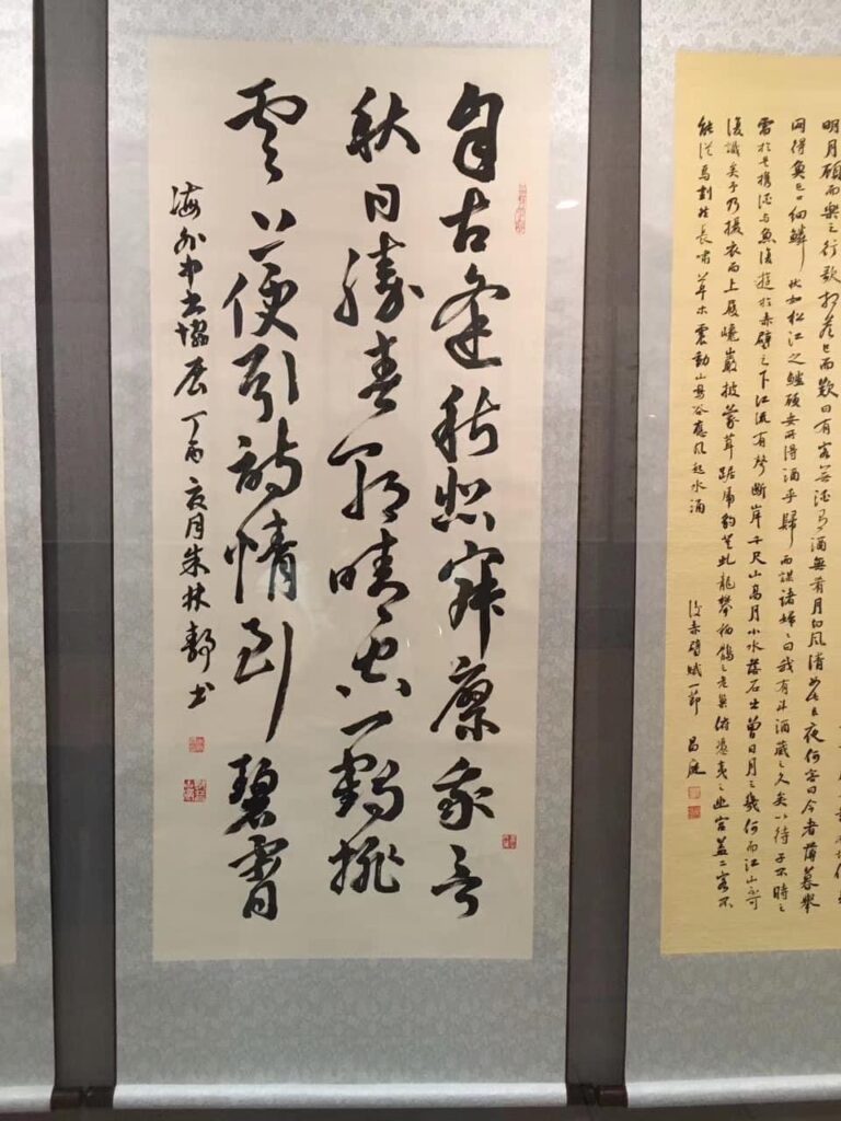 Calligraphy is one of the major art forms in China. Jacqueline Zhu holds a particular fondness for ancient Chinese art: calligraphy and painting. Having inherited this tradition from her family, she has practiced calligraphy since childhood. Through unceasing study and a rich accumulation of knowledge across various cultural fields, she has become an accomplished Chinese calligrapher. Chinese calligraphy flourished during the Han Dynasty (206 BC to 220 AD). By mastering and expressing its artistic skills, Chinese calligraphers use it to convey their moral character, spirit, and philosophical thoughts. Ultimately, ancient Chinese culture and art have become the solid foundation and source of Jacqueline Zhu’s artistic thought and creation.